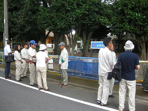8時ごろ徐々に人が集まりはじめ9時ころにはかなり多くの大人も子どもも向井公園を見守っていました。9時半ごろか、役所の人たちが登場。わらわらと10人近くいる。そして何もしなくて見ているだけ。この人たち区役所で仕事していてほしい。