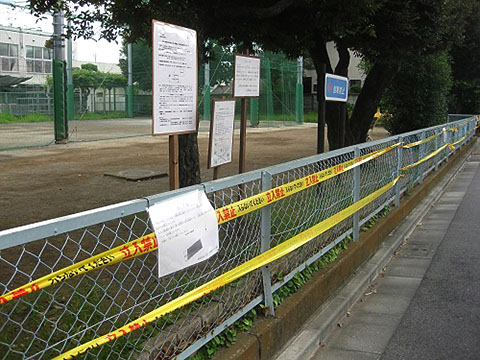 近所の人によると、昨夜12時少し前に職員がやってきて待機、日付が変わったとたんにテープを貼り始めたそうです。井草区民センターも見にいきましたが、同じように黄色いテープ。